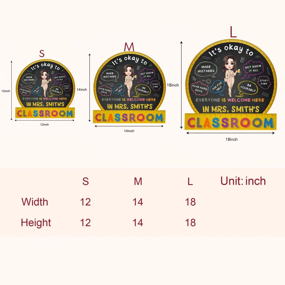 As our products are customized (manufactured after being ordered), the size of the door sign will depend on the shape of the design. The maximal length and width of the door sign are 12, 14 and 18 inches. Please kindly allow a slight difference between the end product and the Preview picture.