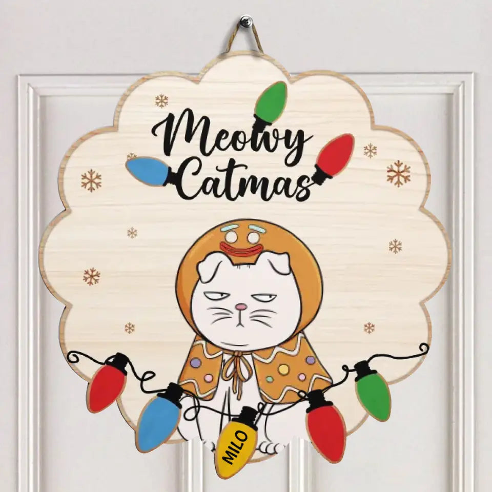 Meowy Catmas - Personalized Custom Door Sign - Chrismast Gift For Cat Mom, Cat Dad, Cat Lover, Cat Owner