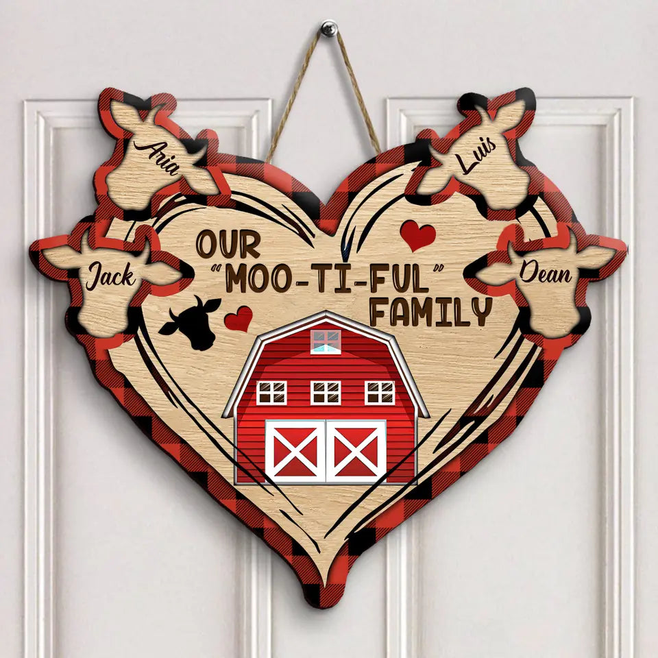 Our Moo-Ti-Ful Family - Personalized Custom Door Sign - Christmas Gift For Family, Family Members