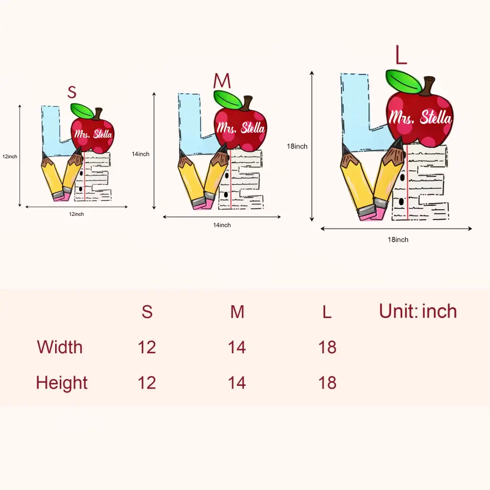 Pencil Paper Love - Personalized Custom Door Sign - Teacher's Day, Appreciation Gift For Teacher