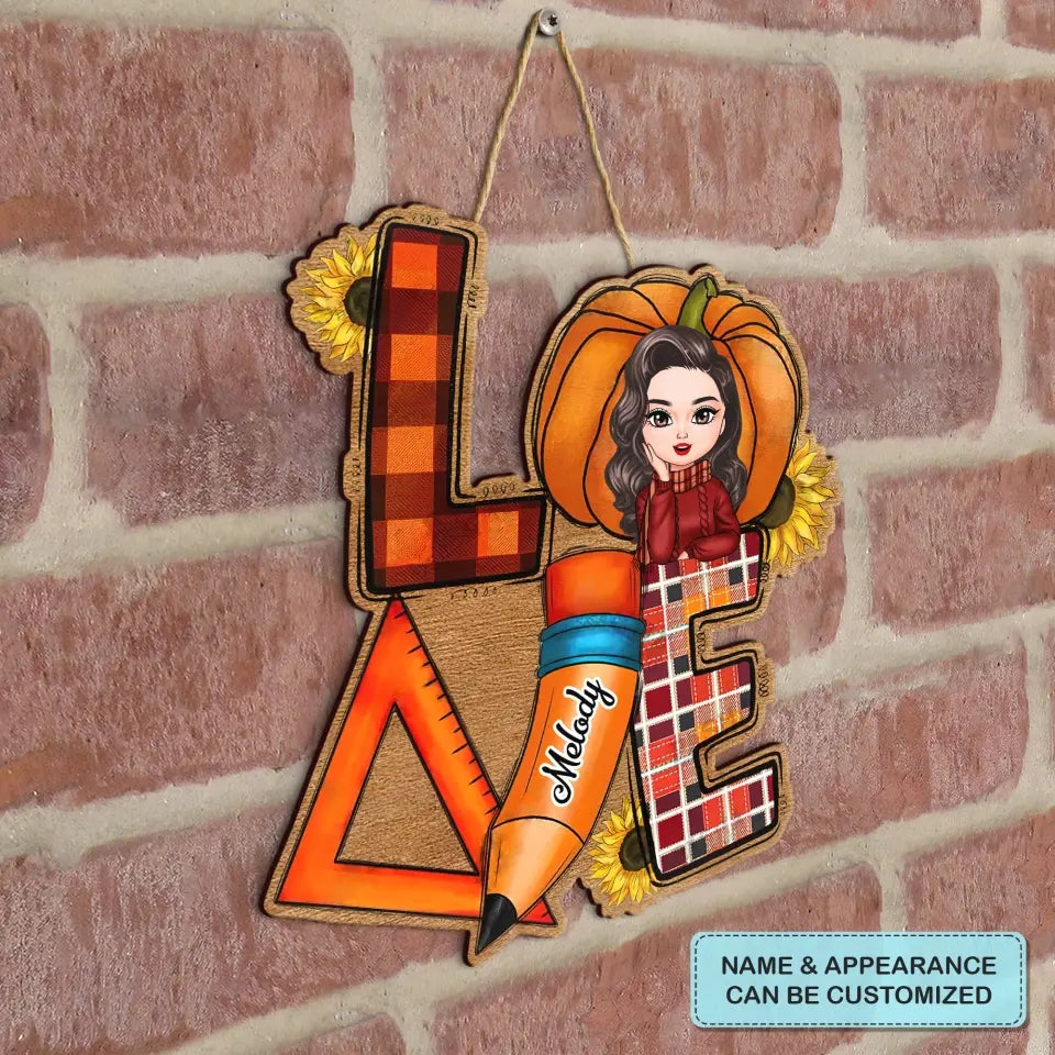 Personalized Custom Door Sign - Birthday Gift, Teacher's Day Gift For Teacher - Love Teacher Life Fall