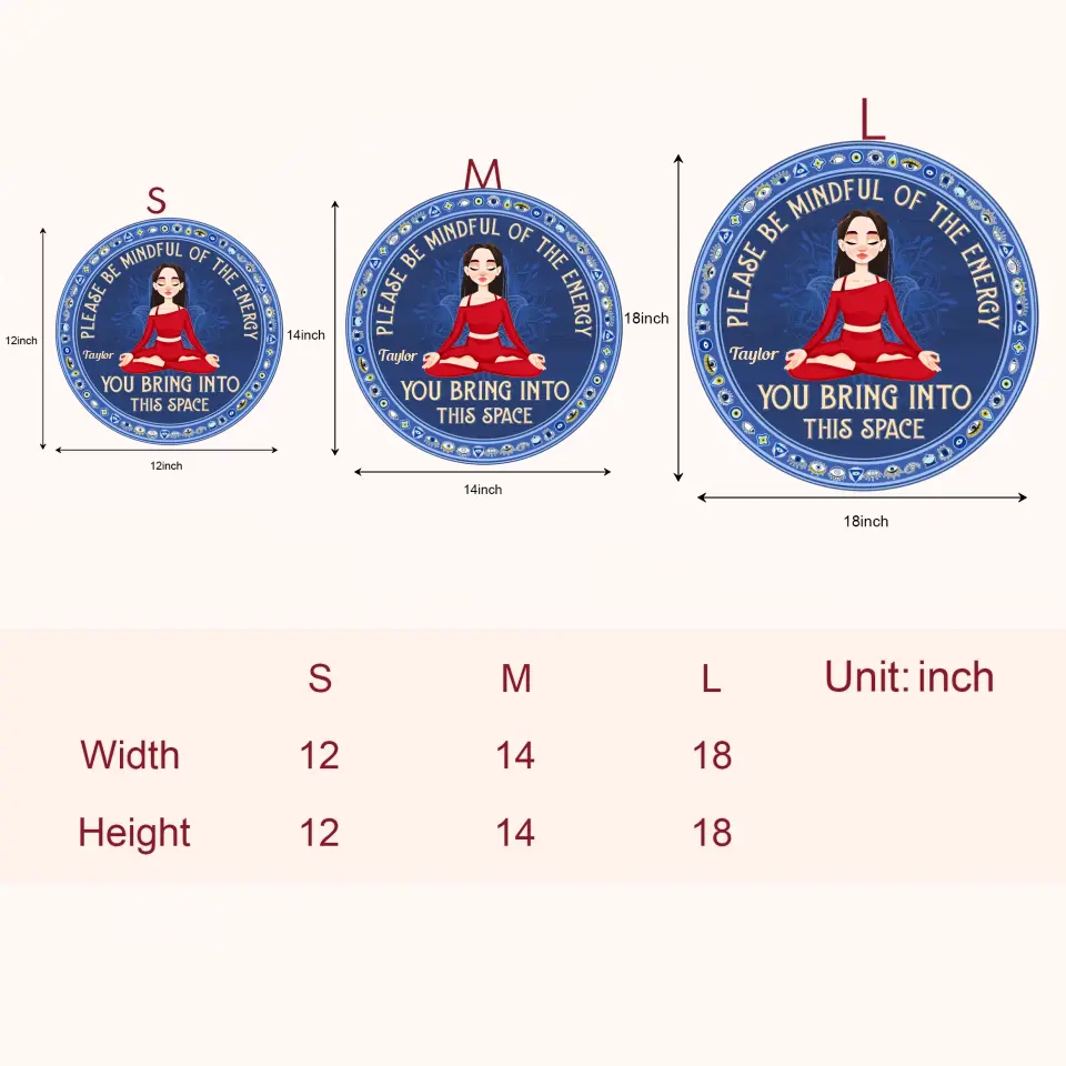 Personalized Custom Door Sign - Home Decor Gift For Yoga Lover - Please Be Mindful Of The Energy