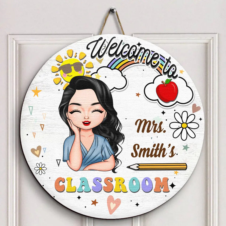 Personalized Custom Door Sign - Teacher's Day, Appreciation Gift For Teacher - Welcome To Classroom Pencil Rainbow