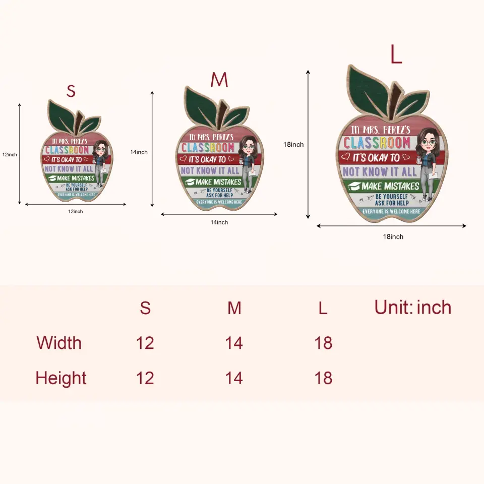 As our products are customized (manufactured after being ordered), the size of the door sign will depend on the shape of the design. The maximal length and width of the door sign are 12, 14 and 18 inches. Please kindly allow a slight difference between the end product and the Preview picture.