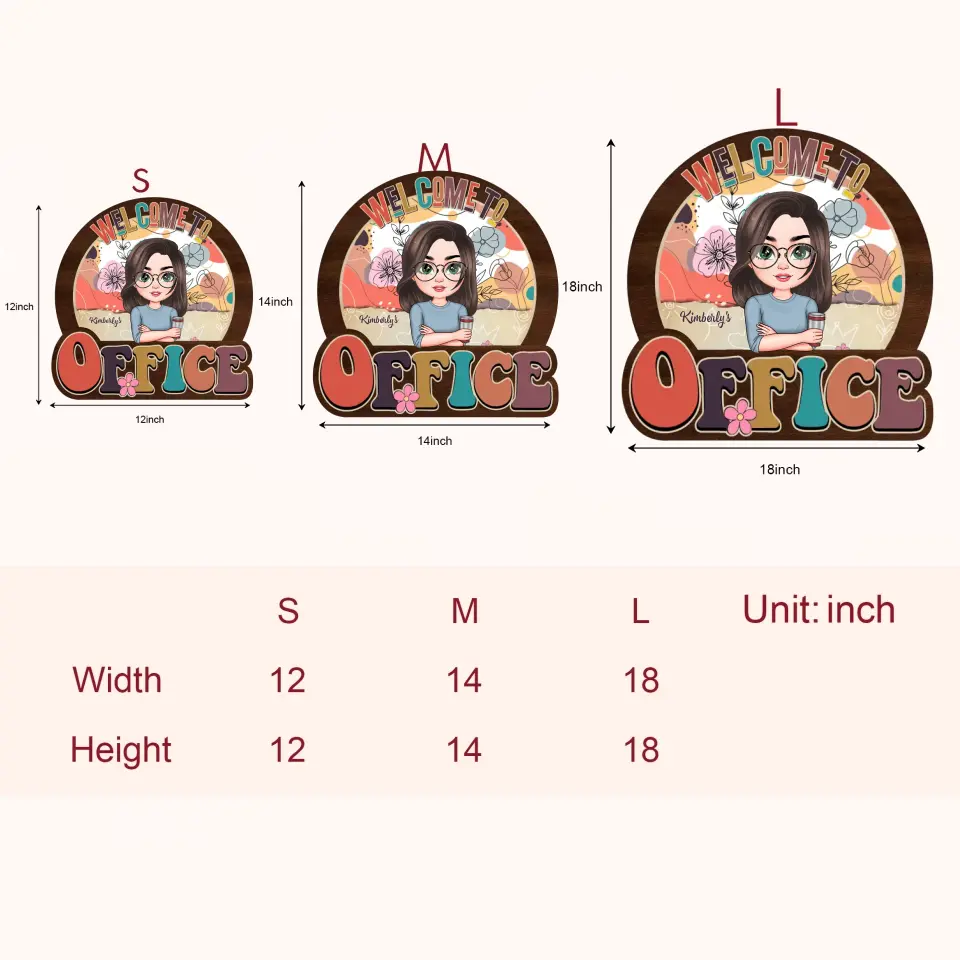 As our products are customized (manufactured after being ordered), the size of the door sign will depend on the shape of the design. The maximal length and width of the door sign are 12, 14 and 18 inches. Please kindly allow a slight difference between the end product and the Preview picture.