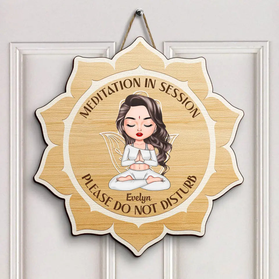 Personalized Custom Door Sign - Welcoming, Home Decor Gift For Yoga Lover - Meditation In Session Please Do Not Disturb