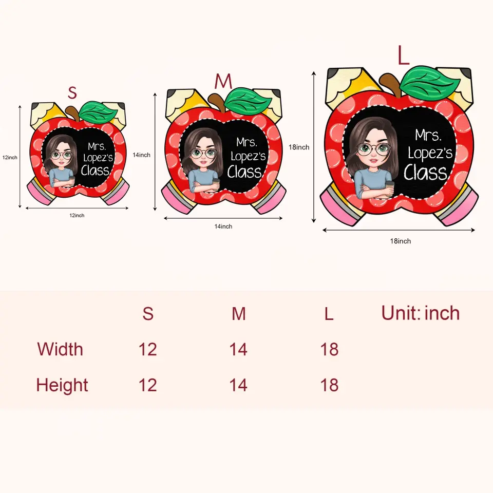 Personalized Custom Door Sign - Welcoming, Teacher's Day Gift For Teacher - Teacher Pencil Apple