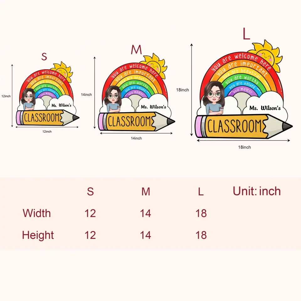Personalized Custom Door Sign - Welcoming, Teacher's Day Gift For Teacher - You Are Welcome Here Rainbow