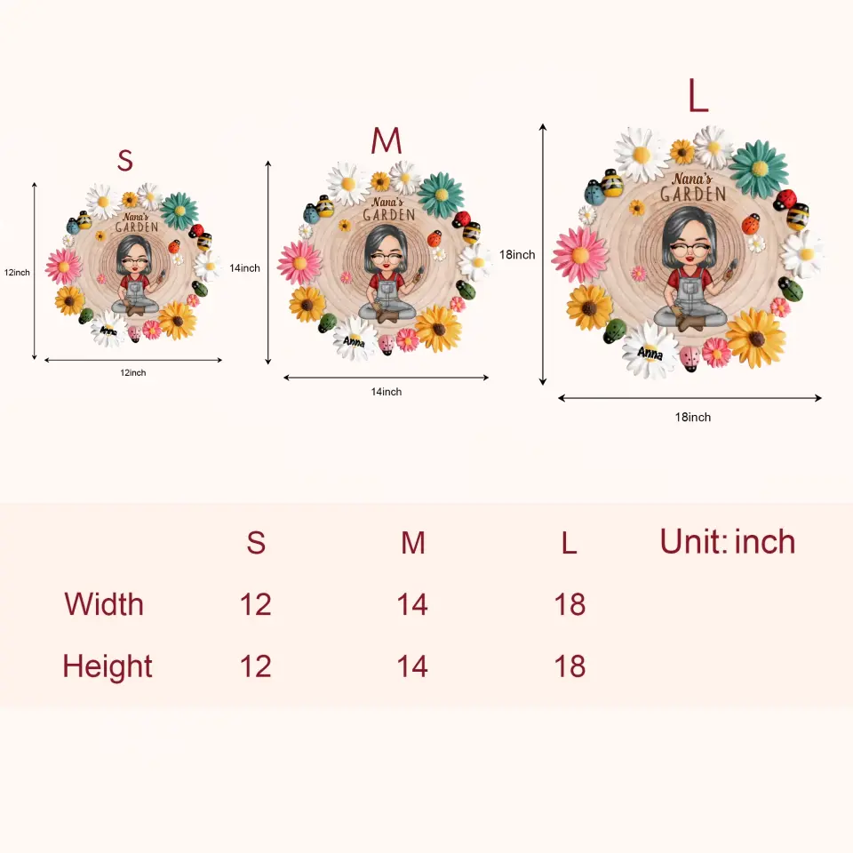 As our products are customized (manufactured after being ordered), the size of the door sign will depend on the shape of the design. The maximal length and width of the door sign are 12, 14 and 18 inches. Please kindly allow a slight difference between the end product and the Preview picture.