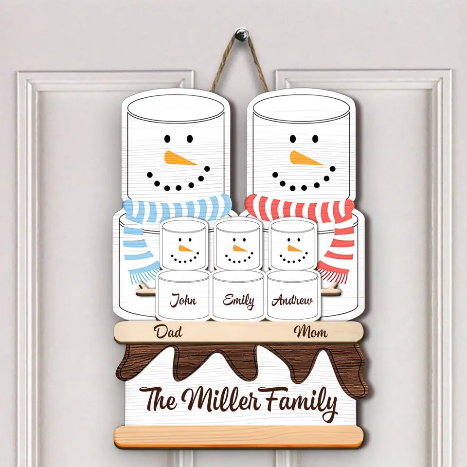 Snowman Family - Personalized Custom 2-Layer Door Sign - Christmas Gift For Family, Family Members, Dad, Mom