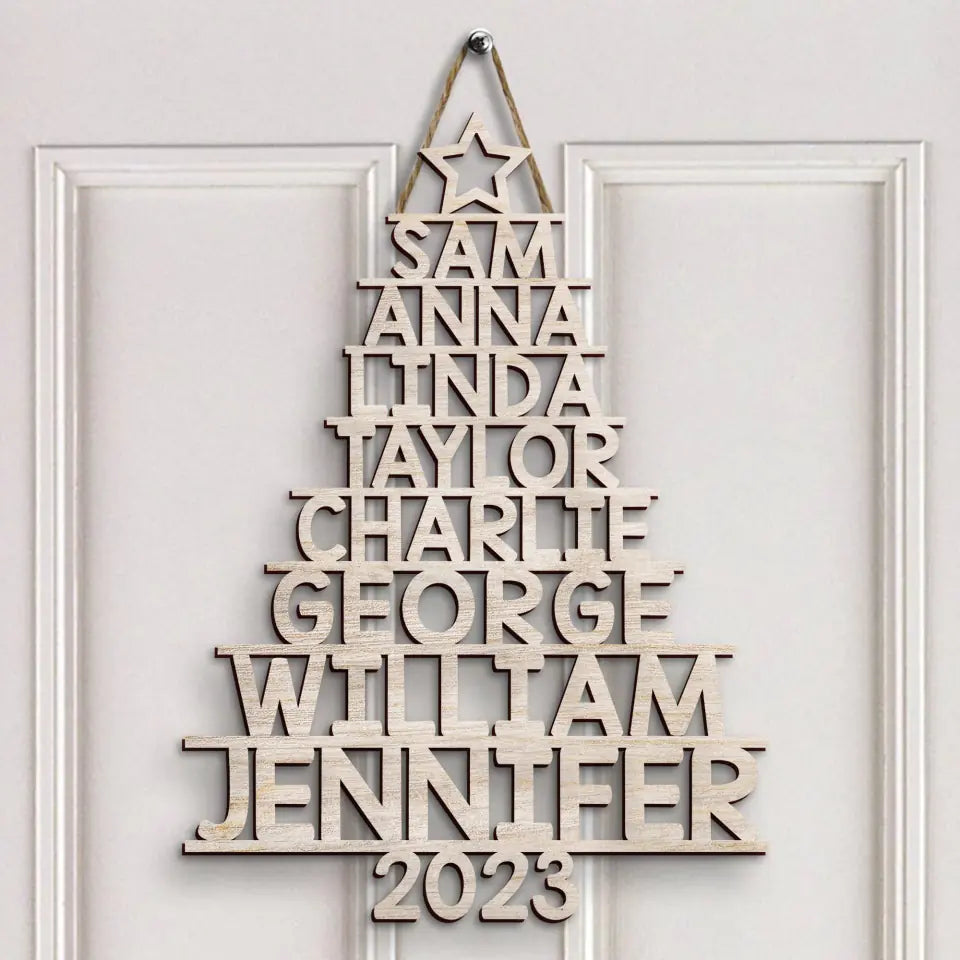 Our Family Christmas 2023 - Personalized Custom Door Sign - Christmas Gift For Mom, Dad, Grandma, Grandpa, Family Members