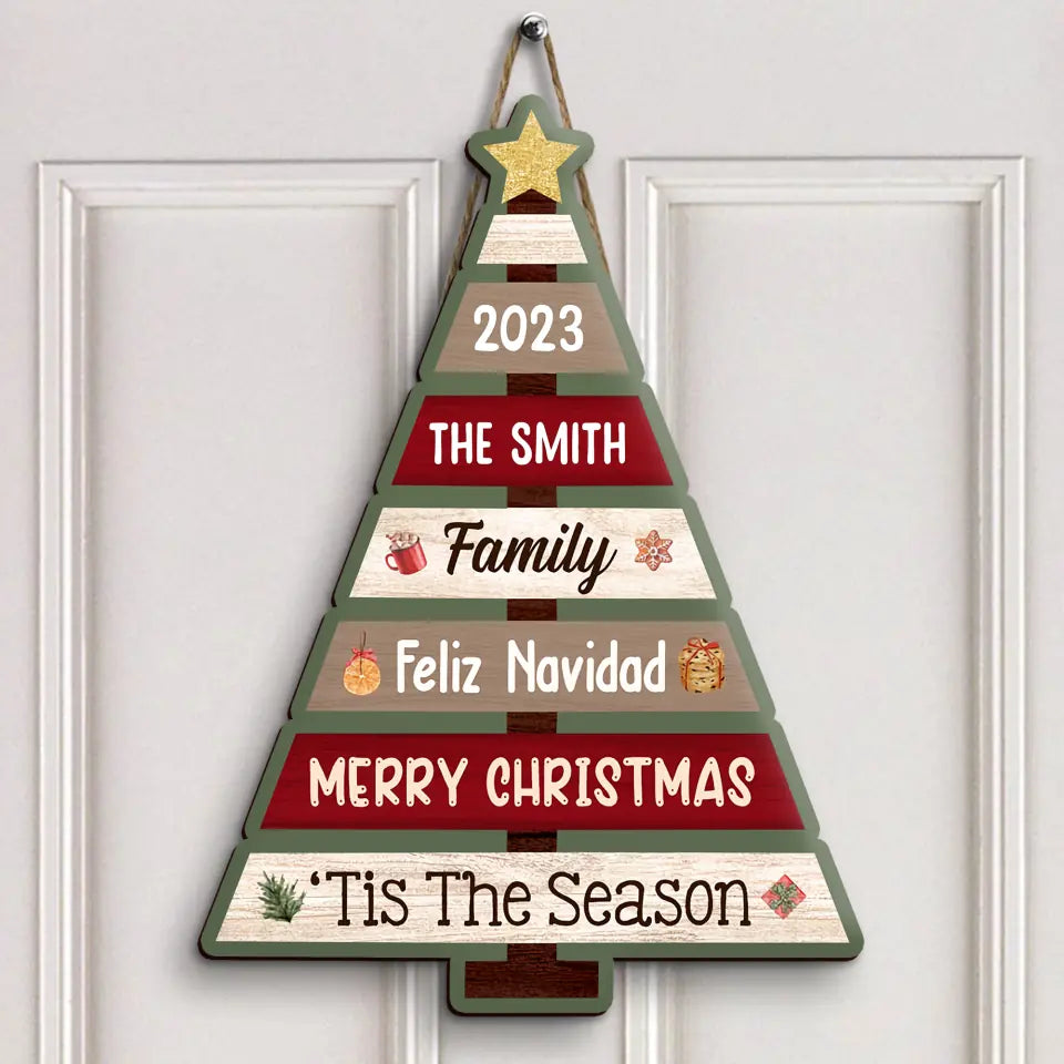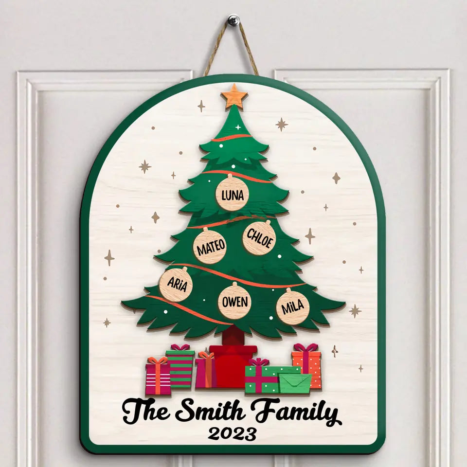 Family Christmas Tree - Personalized Custom Door Sign - Christmas Gift For Family Members