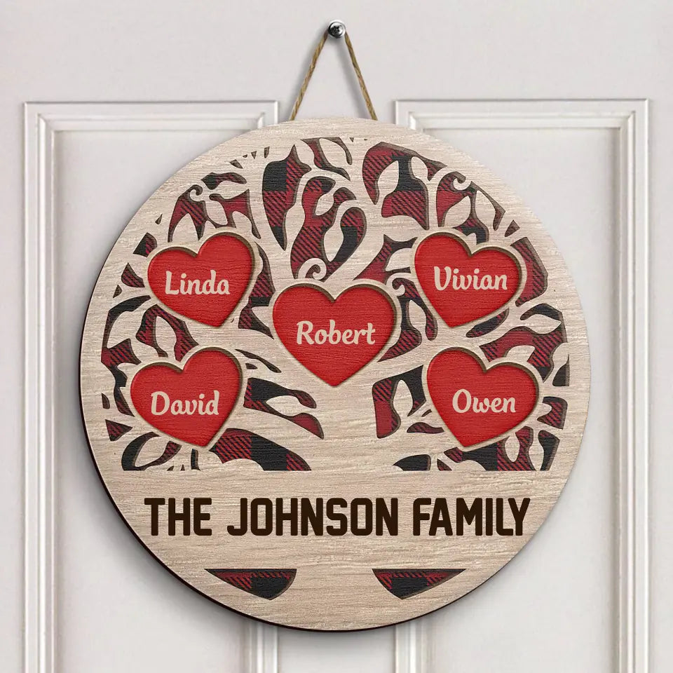 Family Tree Love - Personalized Custom Door Sign - Christmas Gift For Family Members