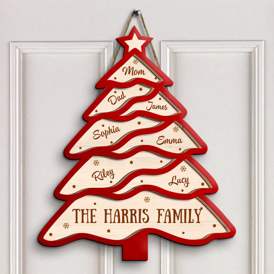 Christmas Tree - Personalized Custom 2-Layer Door Sign - Christmas Gift For Family, Family Members