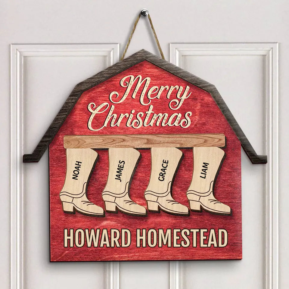 Cowboy Boots Family - Personalized Custom Door Sign - Christmas Gift For Family, Family Members