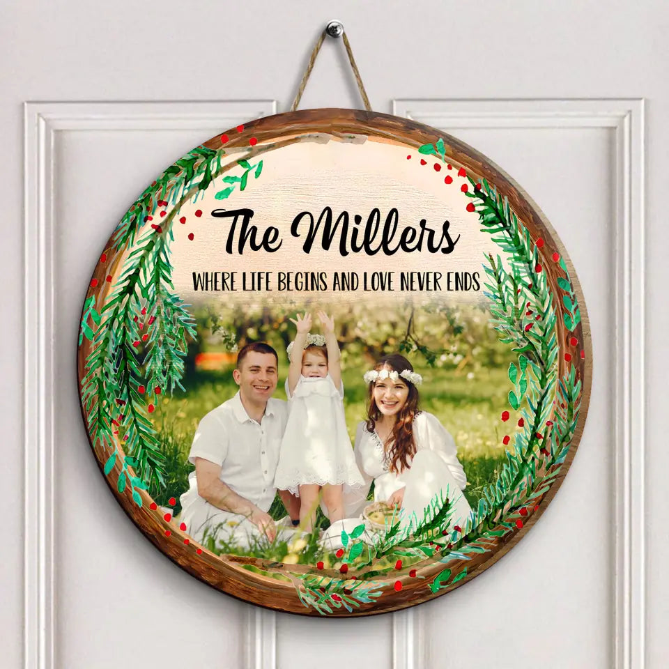 Family Where Life Begins And Love Never Ends - Personalized Custom Door Sign - Christmas Gift For Family, Family Members, Dad, Mom