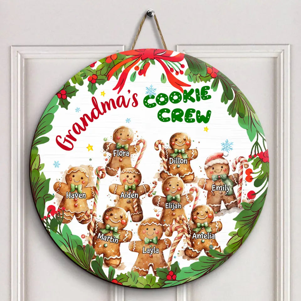 Grandma's Cookie Crew - Personalized Custom Door Sign - Christmas, Mother's Day Gift For Grandma, Mom, Family, Family Members