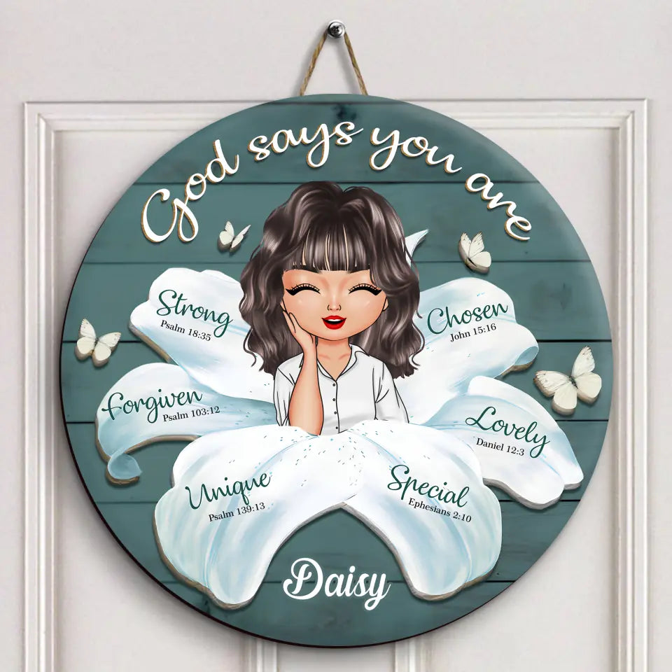 God Says You Are - Personalized Custom Door Sign - Gift For Family Members, Friends