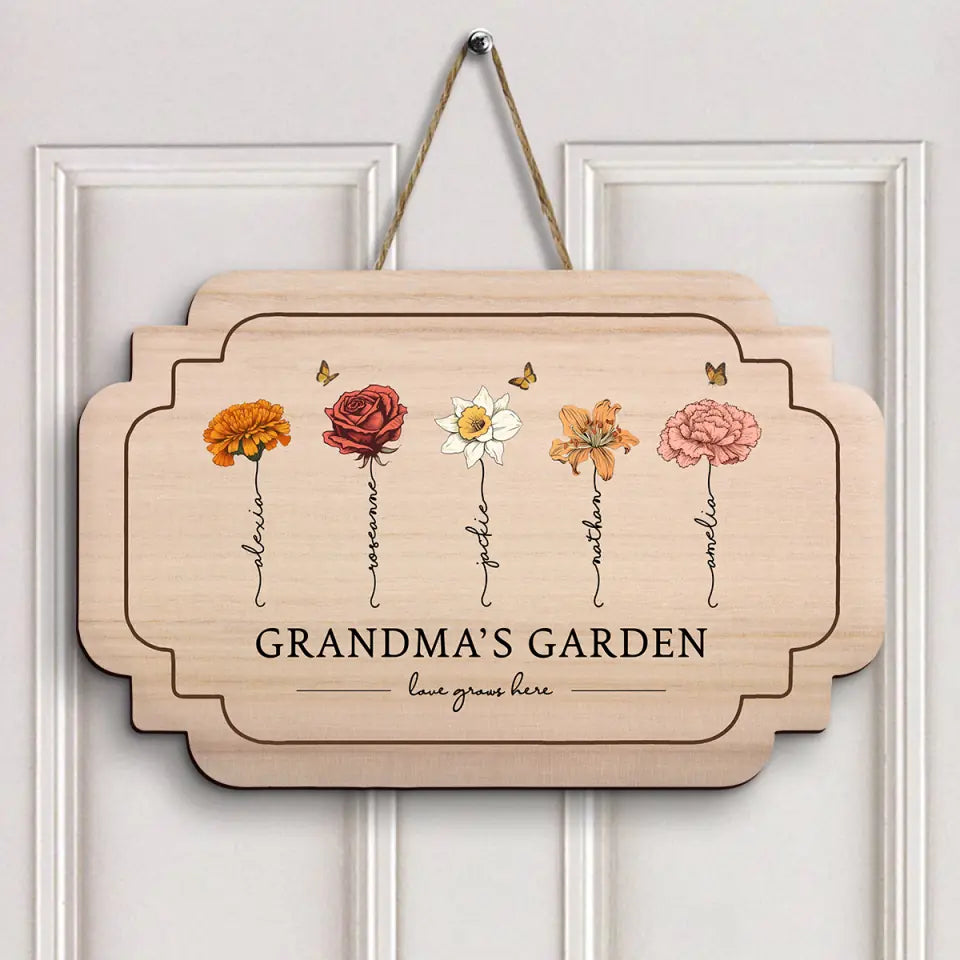 Love Grows Here - Personalized Custom Door Sign - Gift For Grandma