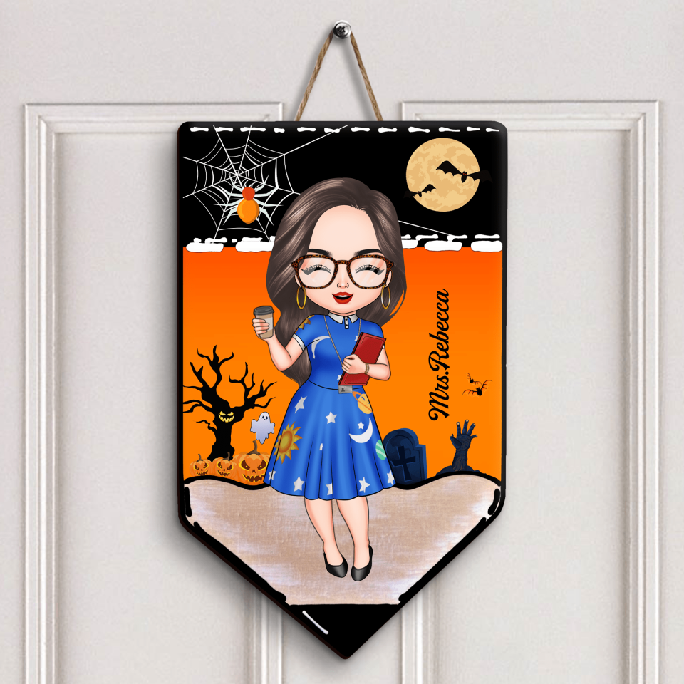Personalized Door Sign - Gift For Teacher - Pencil Door Sign Halloween