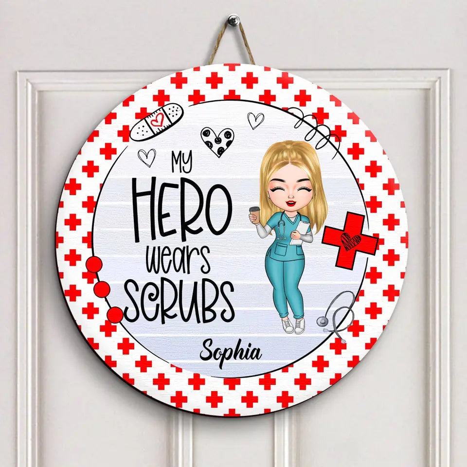 Personalized Door Sign - Gift For Nurse - My Hero Wears Scrubs ARND018