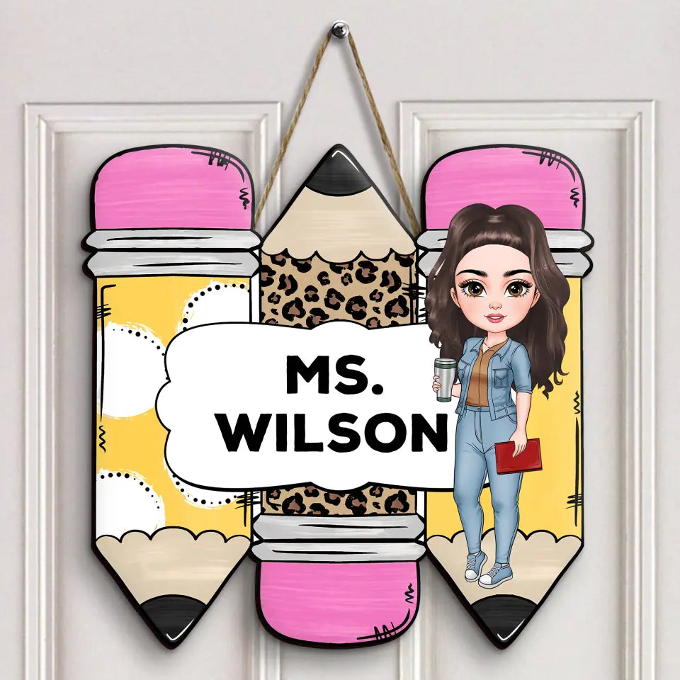 Personalized Custom Door Sign - Welcoming, Teacher's Day, Birthday Gift For Teacher - Yellow Pencil