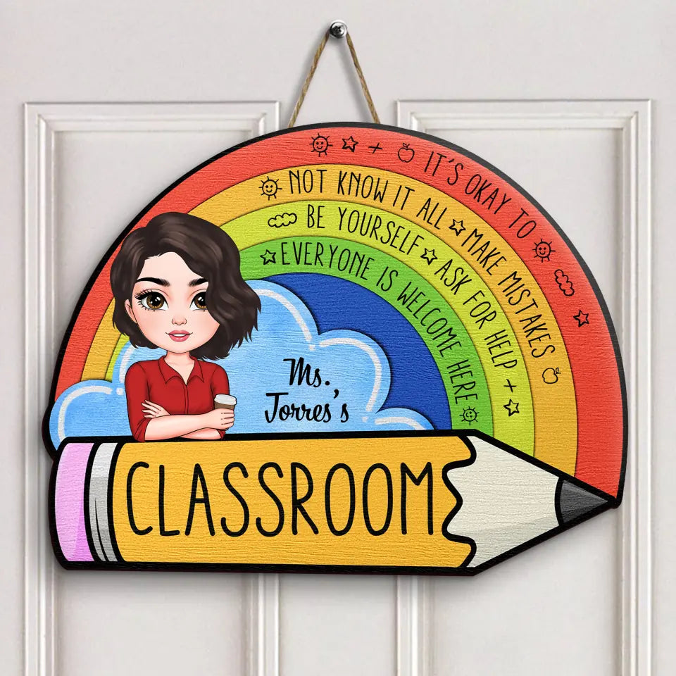 Personalized Custom Door Sign - Teacher's Day Gift For Teacher - Rainbow Classroom