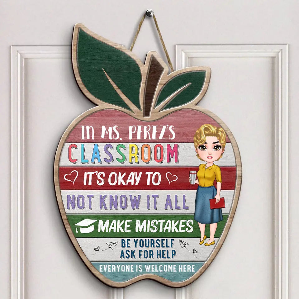 Personalized Custom Door Sign - Welcoming, Teacher's Day Gift For Teacher - It's Okay To Make Mistakes