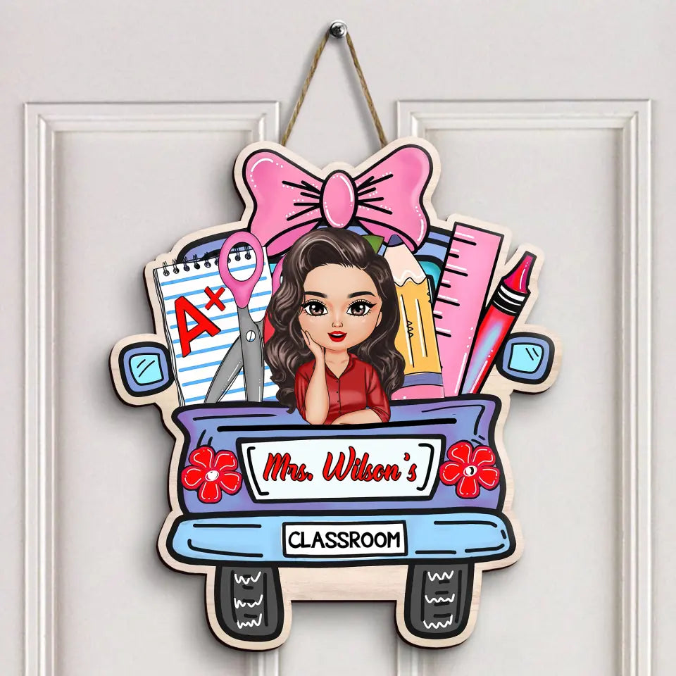 Personalized Custom Door Sign - Teacher's Day, Appreciation Gift For Teacher - Yellow Truck Teacher