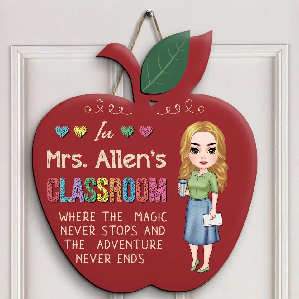 Personalized Custom Door Sign - Teacher's Day, Appreciation Gift For Teacher - Where The Magic Never Stop