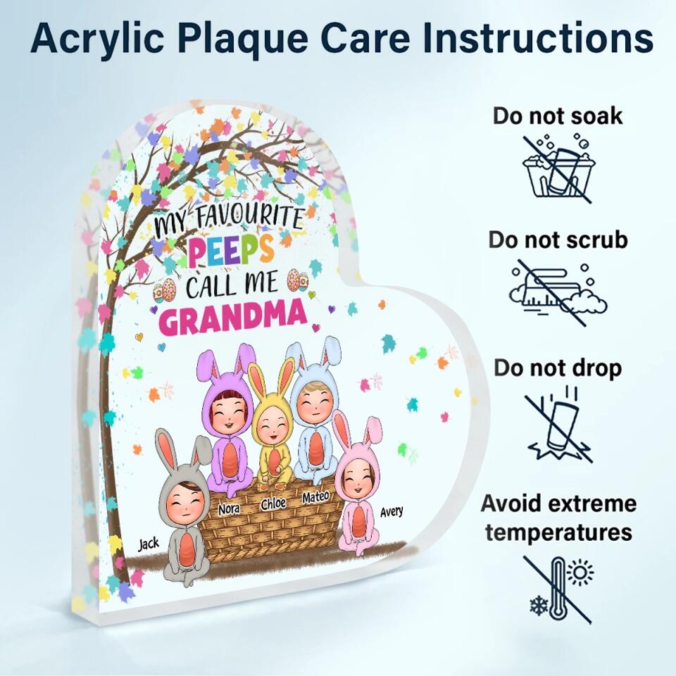 Grandma Favorite Peeps - Personalized Heart-shaped Acrylic Plaque - Easter Gift For Grandma