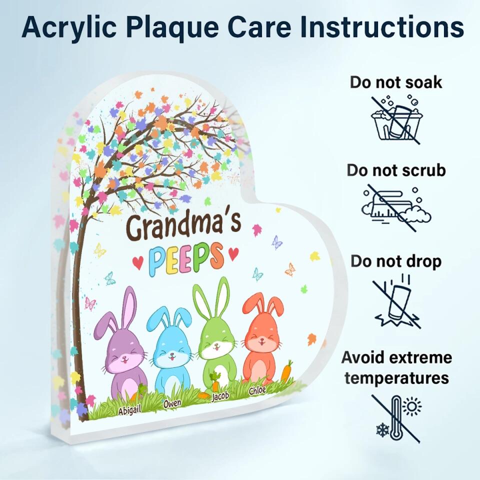 Grandma's Peeps  - Personalized Heart-shaped Acrylic Plaque - Easter Gift For Family