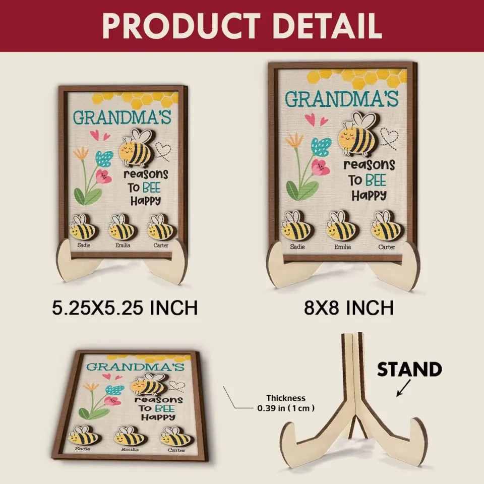Reasons To Bee Happy - Personalized Custom 2-Layer Wooden Plaque - Easter Gift For Family Members, Grandma, Mom
