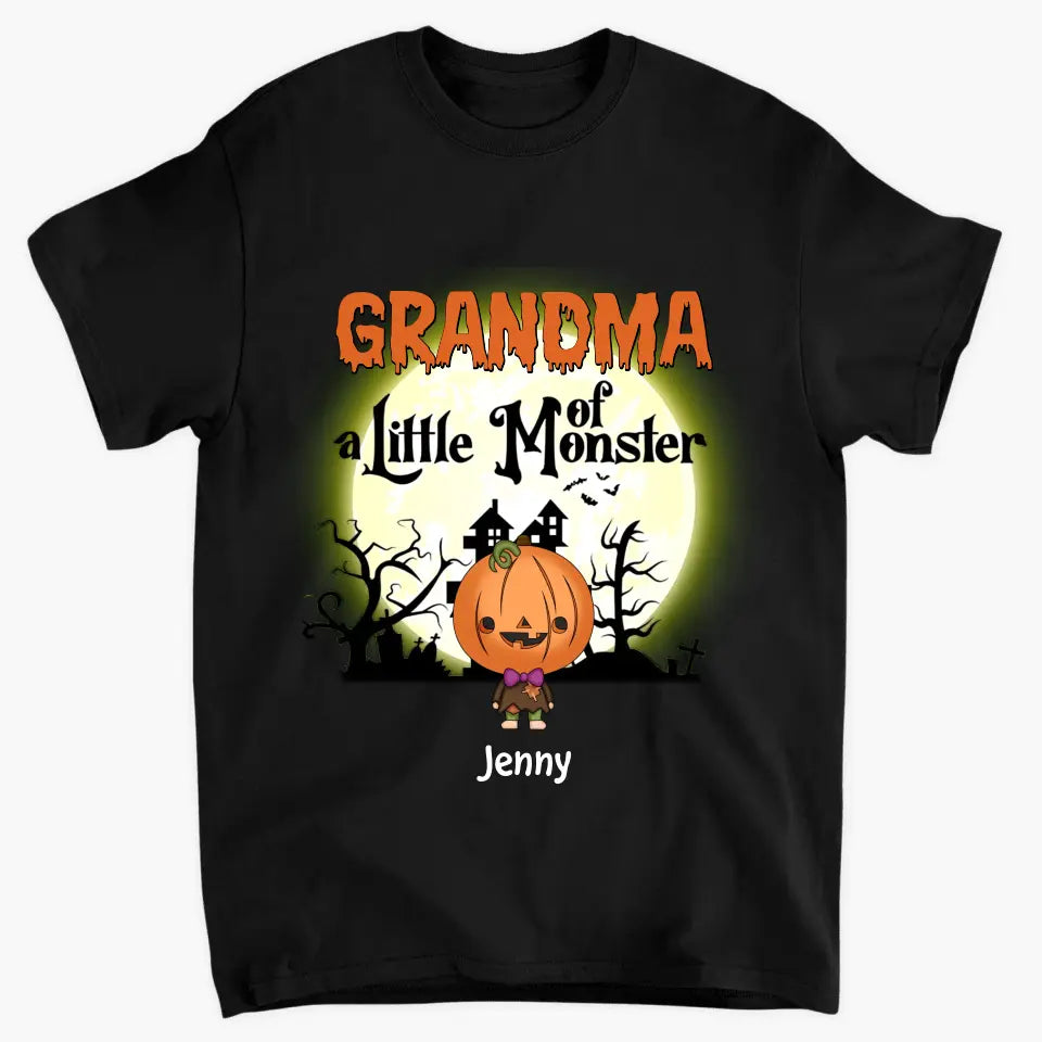 Personalized Custom T-shirt - Halloween Gift For Mom, Grandma, Dad, Grandpa - Grandma Of The Little Monster