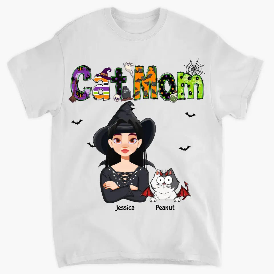 Personalized Custom T-shirt - Halloween Gift For Cat Mom, Cat Lover - Cat Mom Halloween