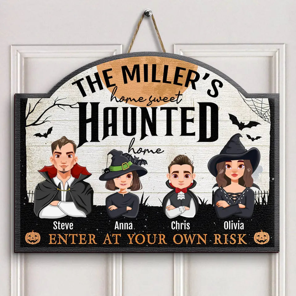 Home Sweet Haunted Home - Personalized Custom Door Sign - Halloween Gift For Family