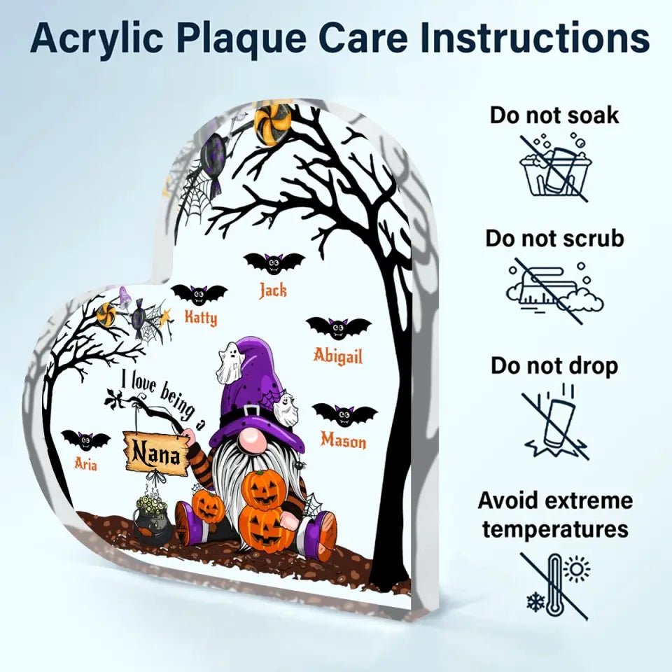 I Love Being A Nana Halloween - Personalized Custom Heart-shaped Acrylic Plaque - Halloween Gift For Grandma, Mom, Family Members