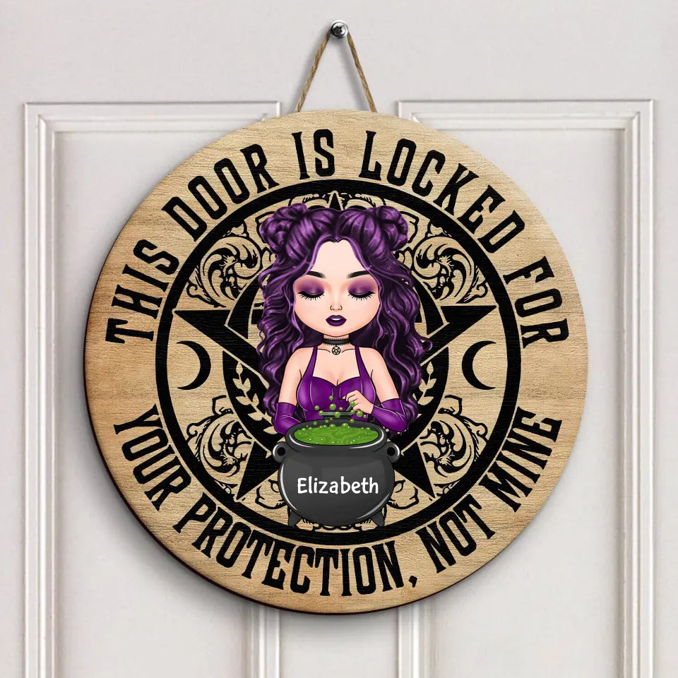 Personalized Custom Door Sign - Halloween, Welcoming Gift For Wiccan -This Door Is Locked For Your Protection Not Mine