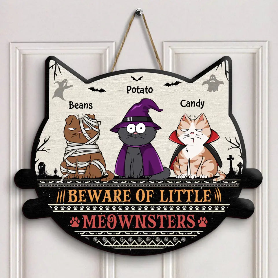 Personalized Custom Door Sign - Halloween Gift For Cat Lover, Cat Mom, Cat Dad, Cat Parents - Beware Of Little Meownsters