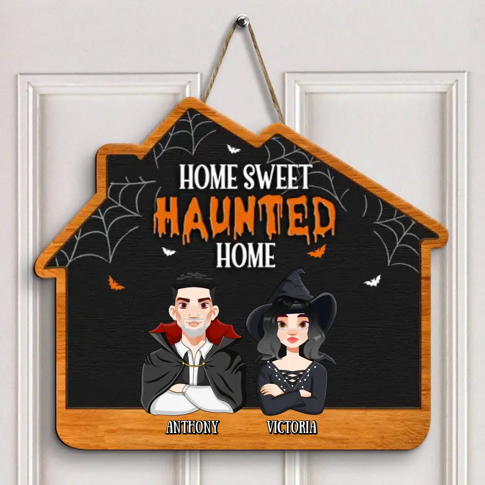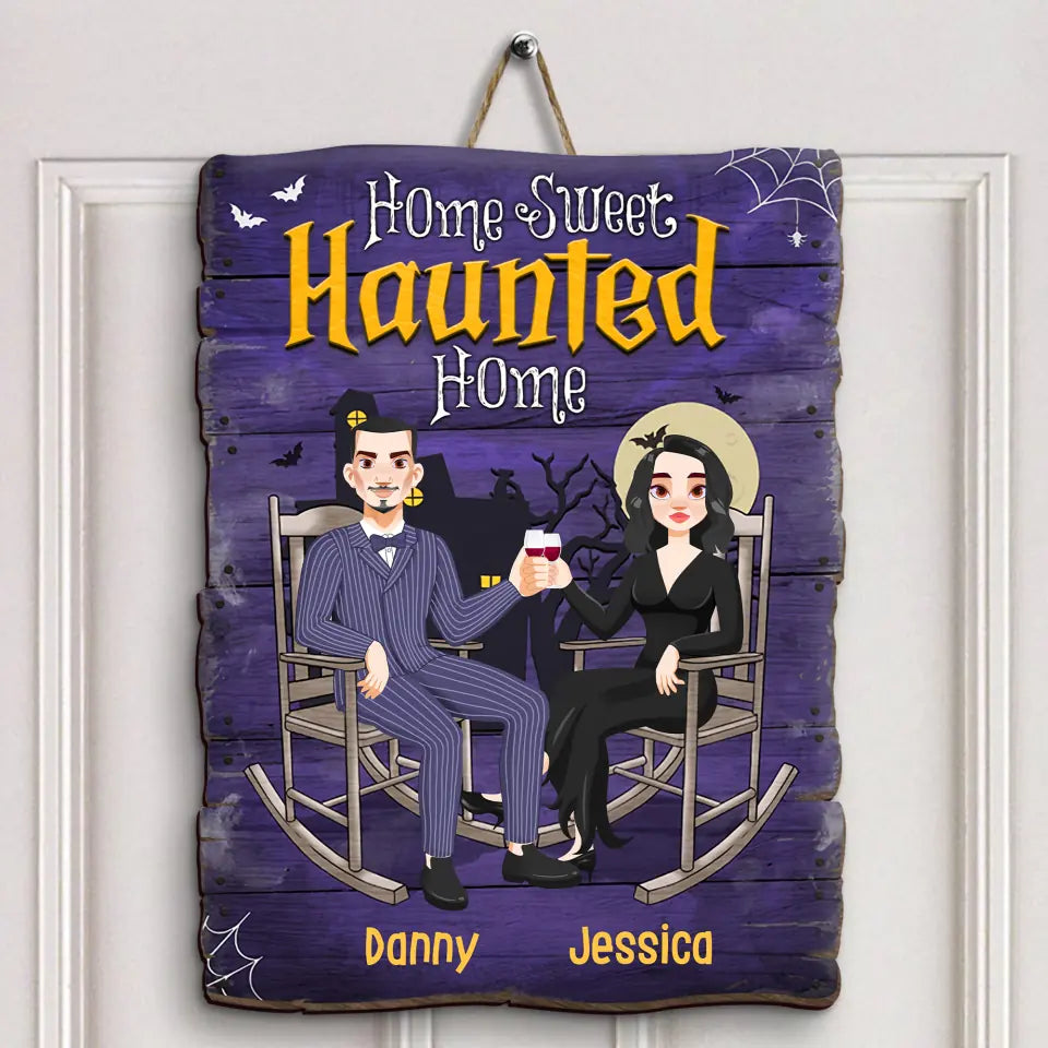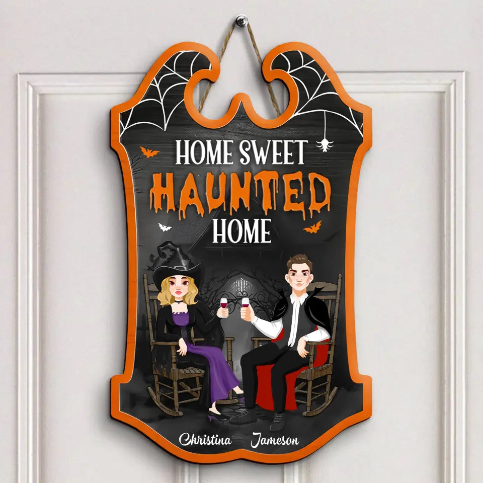 Home Sweet Haunted Home - Personalized Custom Door Sign - Halloween Gift For Couple, Husband, Wife