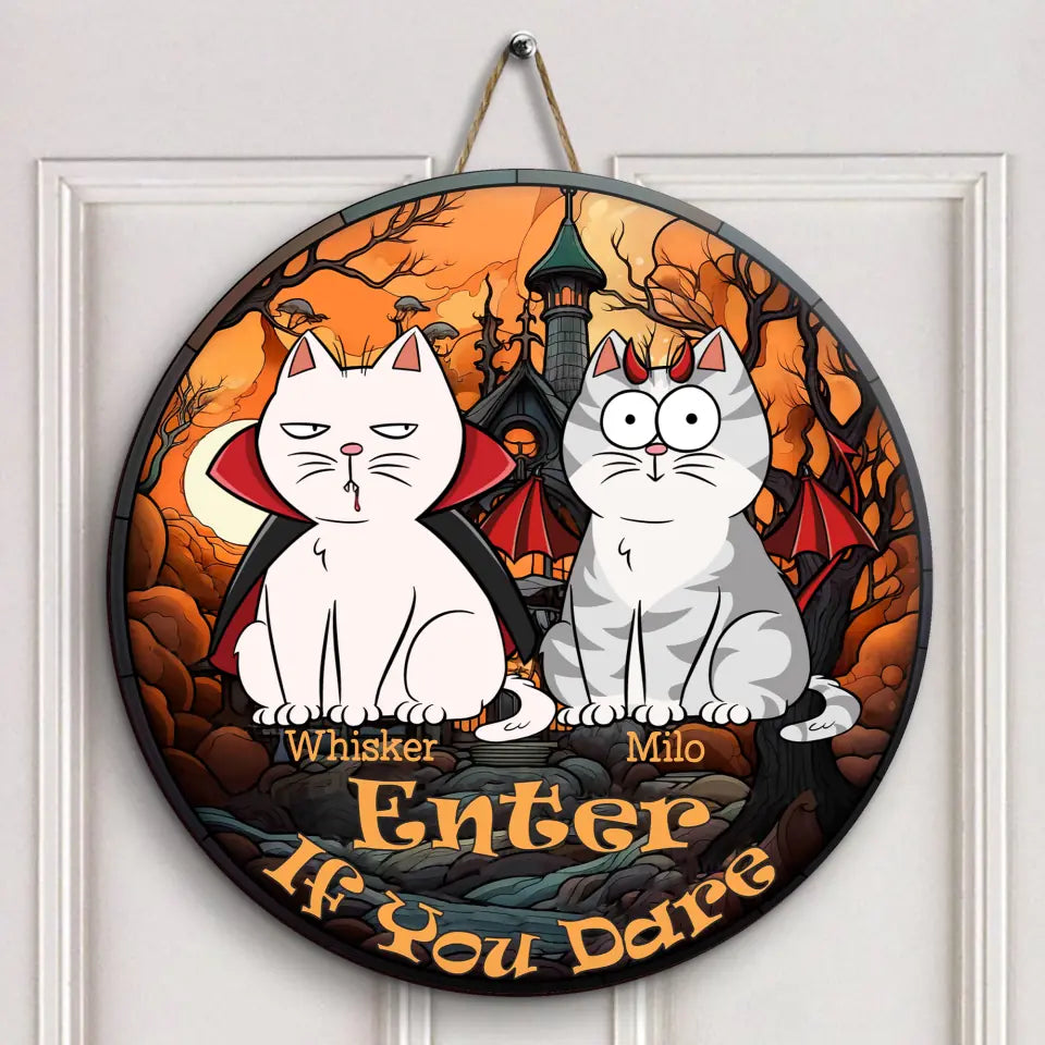 Enter If You Dare - Personalized Custom Door Sign - Halloween Gift For Cat Mom, Cat Dad, Cat Lover, Cat Owner