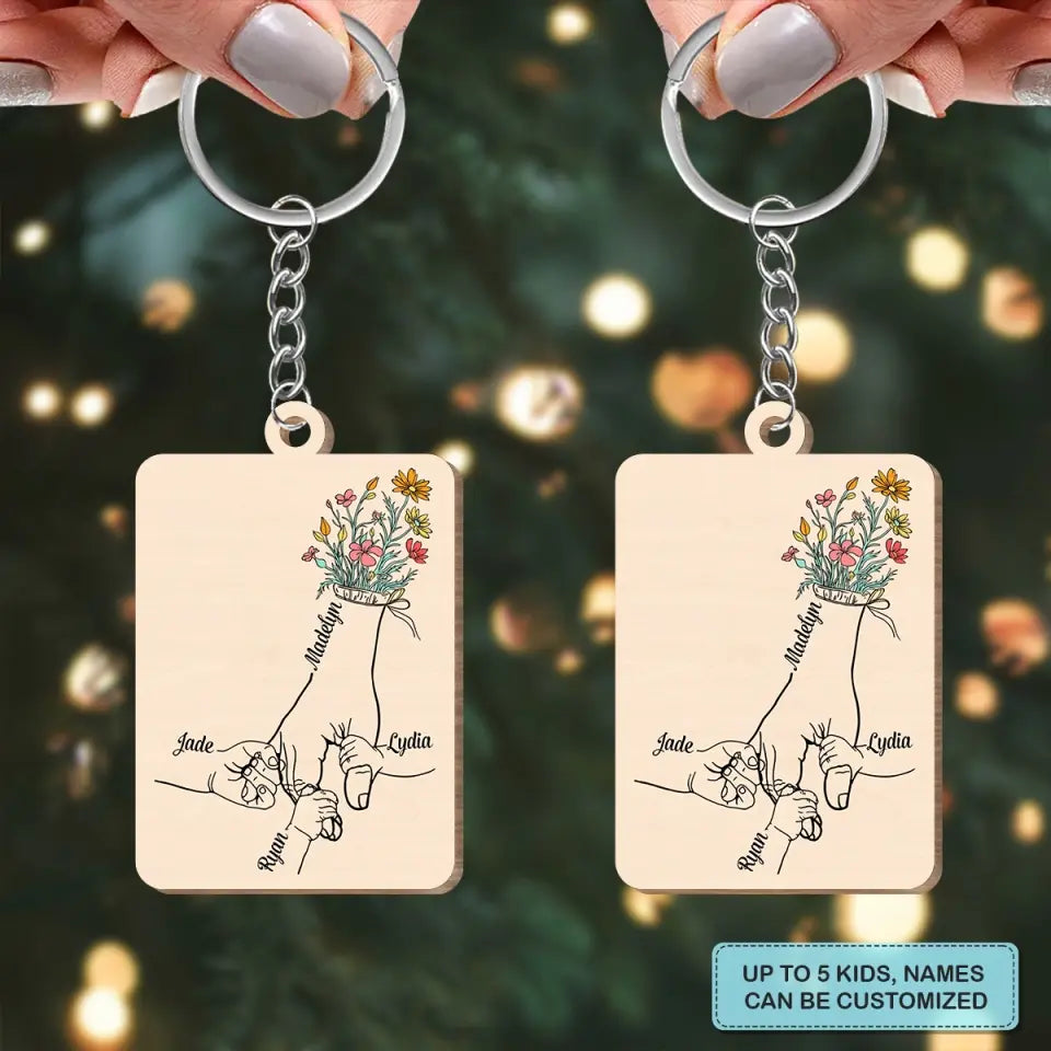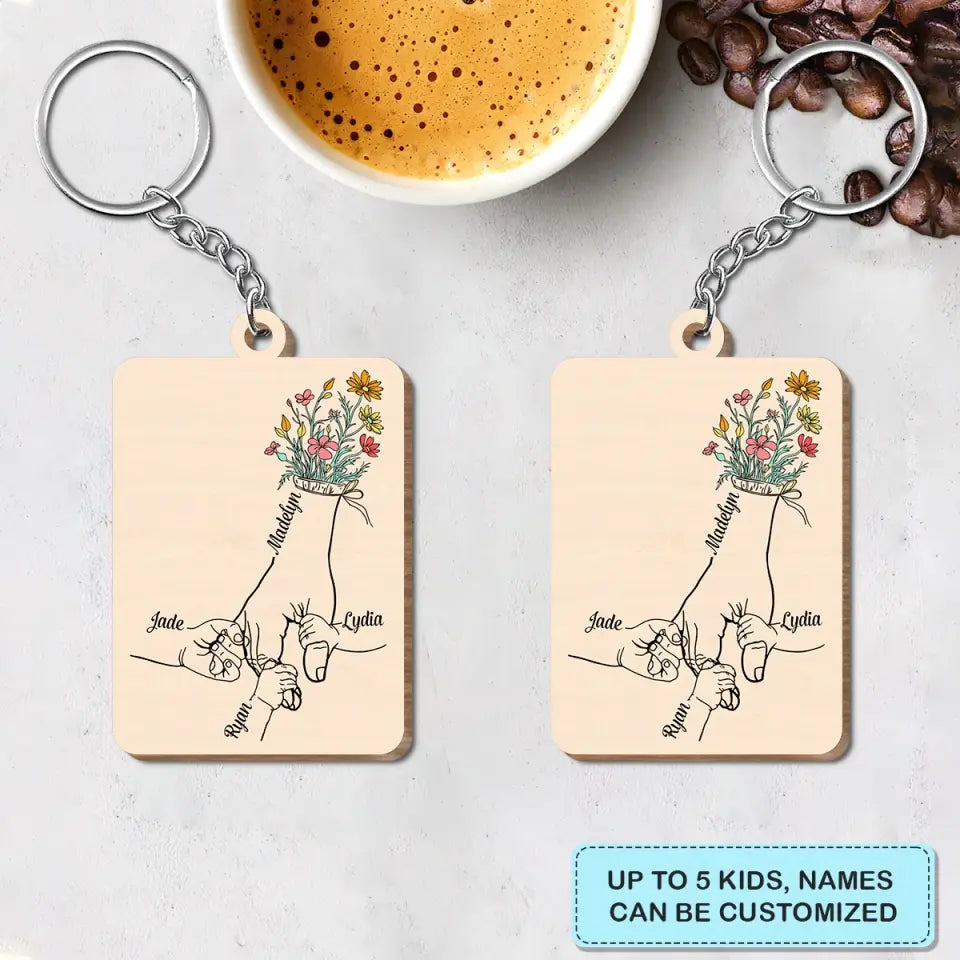 Personalized Wooden Keychain - Mother's Day Gift For Mom, Grandma - Hold Mom's Hand ARND005