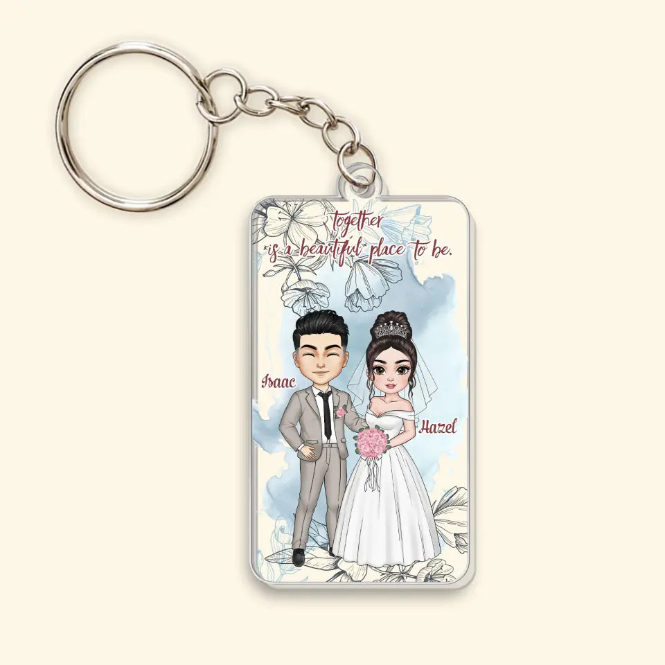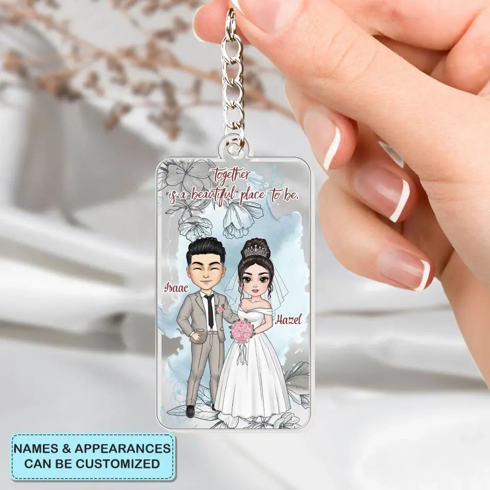 Together Is A Beautiful Place To Be - Personalized Custom Acrylic Keychain - Valentine's Day, Anniversary Gift For Couple, Wife, Husband, Boyfriend, Girlfriend
