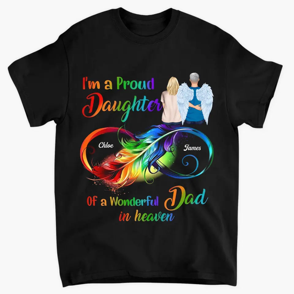 Personalized T-shirt - Memorial Gift For Family Members, Mom, Dad, Sisters, Brothers - I'm A Proud Daughter Of A Wonderful Dad In Heaven ARND0014