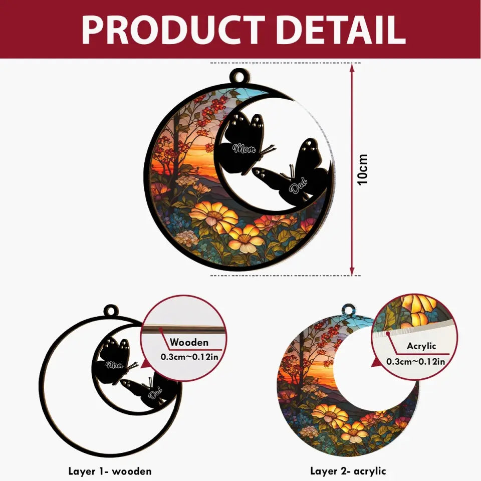 • The front of this suncatcher is made from premium natural wood and mounted on acrylic plexiglass.
