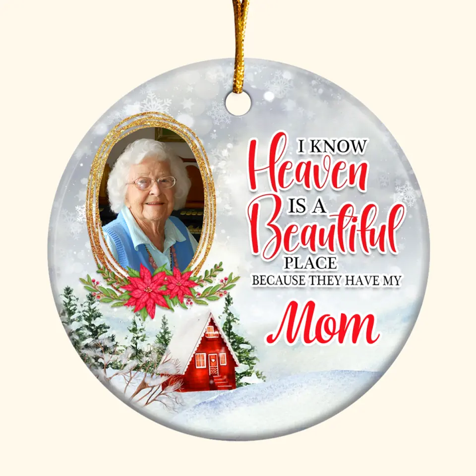 I Know Heaven Is A Beautiful Place - Personalized Custom Ceramic Ornament - Memorial Gift For Family Members