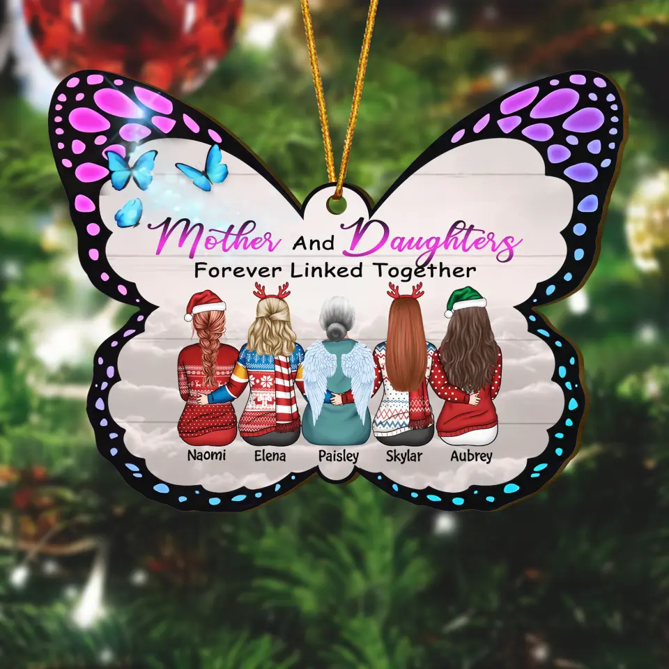 Mother and Daughters Forever Linked Together - Personalized Wood Ornament - Christmas Gift For Mom