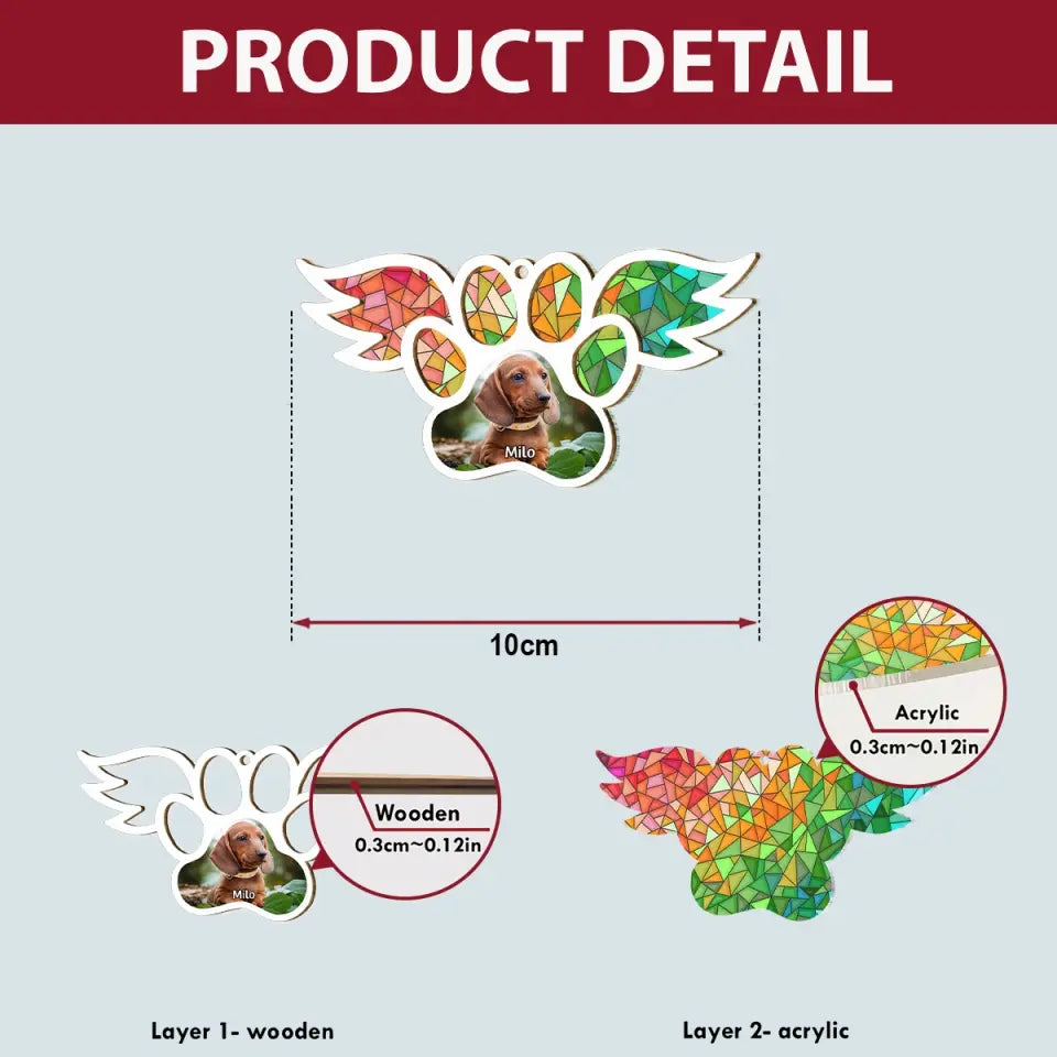 Paw With Wings - Personalized Custom Suncatcher Layer Mix Ornament - Memorial Gift For Dog Lover
