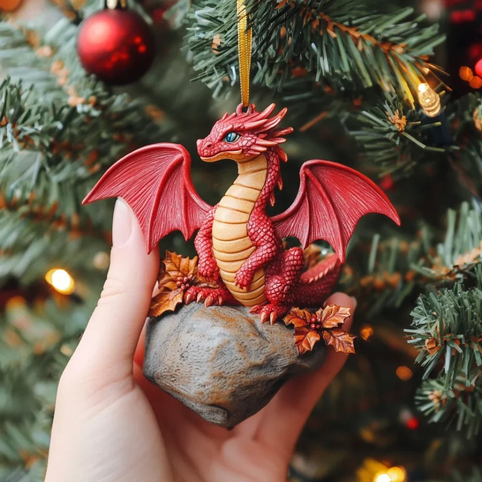 Crimson Ember - Personalized Custom Mica Ornament - Christmas Gift For Dragon Lovers