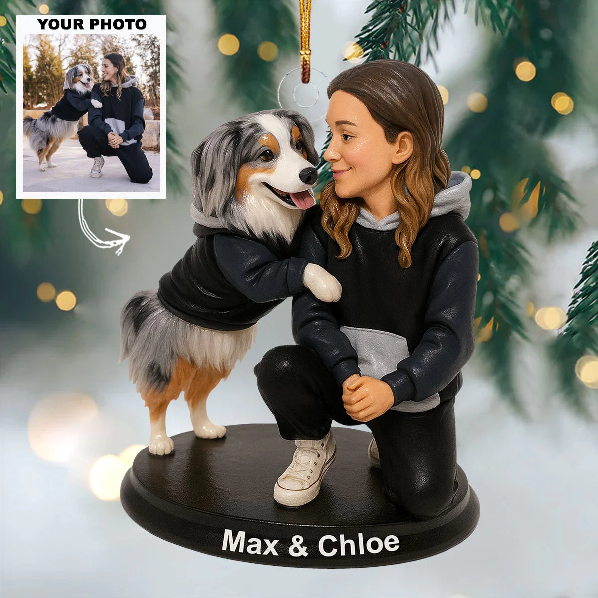 NOTE: Our custom ornaments are made in an artistic cartoon style, following a similar pose and style as shown in our examples.